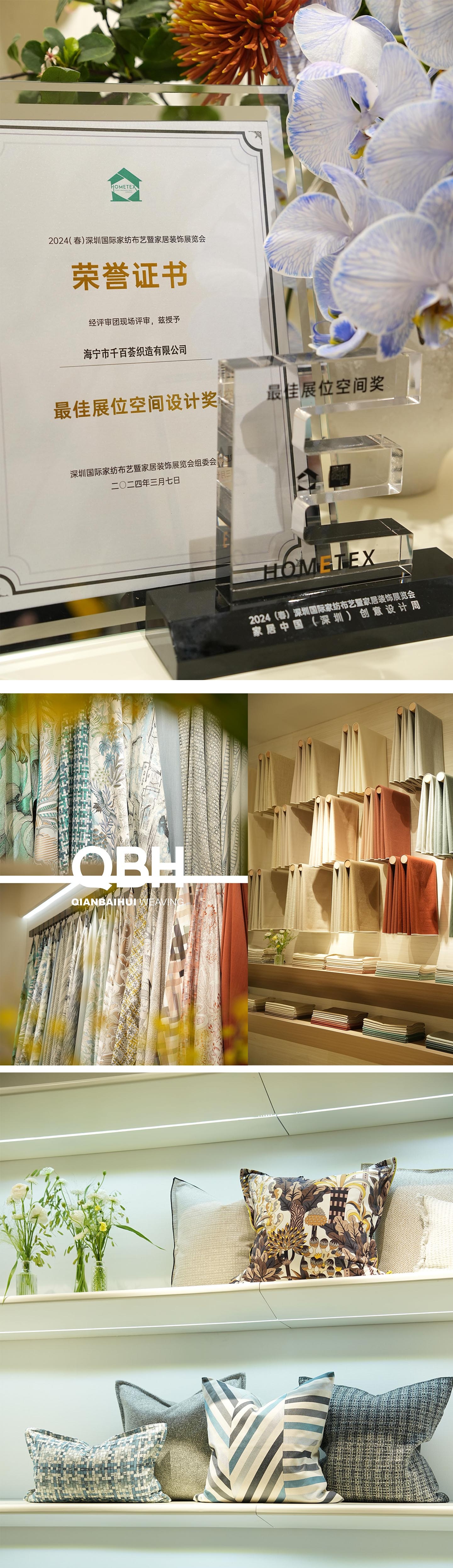 作為一家致力于打造高品質(zhì)家居生活的面料織造品牌,千百薈通過展會向大家展示了獨特的設(shè)計理念和創(chuàng)新的面料產(chǎn)品。期待與大家構(gòu)建更長久的情誼。