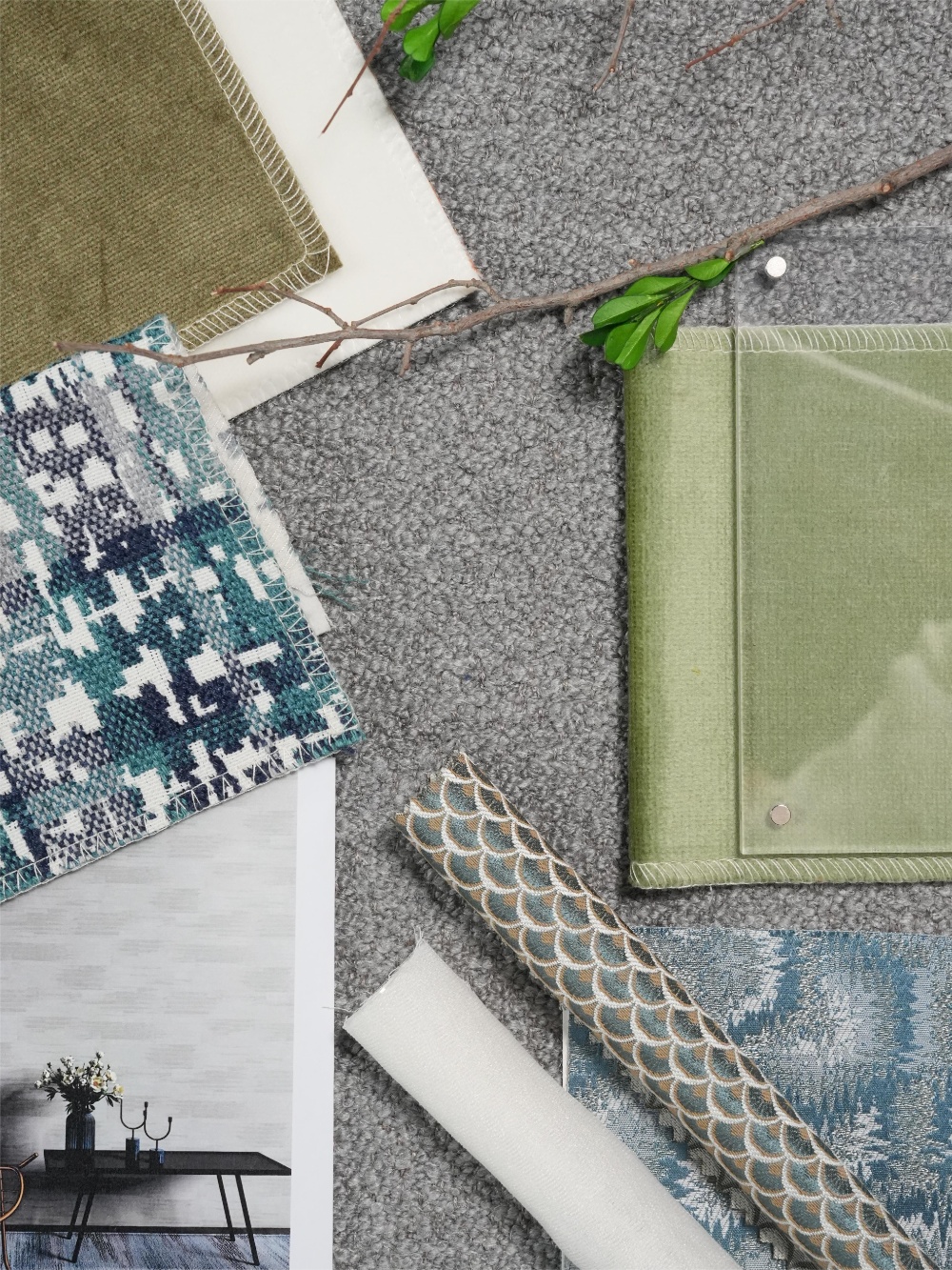 不同純度、明度的綠色,會給人不同的感覺。墨綠色穩重質樸、沉靜淡然;莫蘭迪綠恬靜淡雅;牛油果綠純凈自然,帶有文藝感……