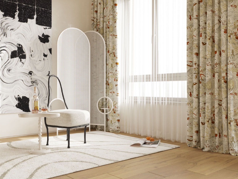當(dāng)硬裝采用比較百搭的基礎(chǔ)色系,這時的軟裝就可以適當(dāng)應(yīng)用一點(diǎn)黃色,如單椅、沙發(fā)、抱枕,或者是大面積的布藝窗簾。給空間亮點(diǎn),又富有層次感。