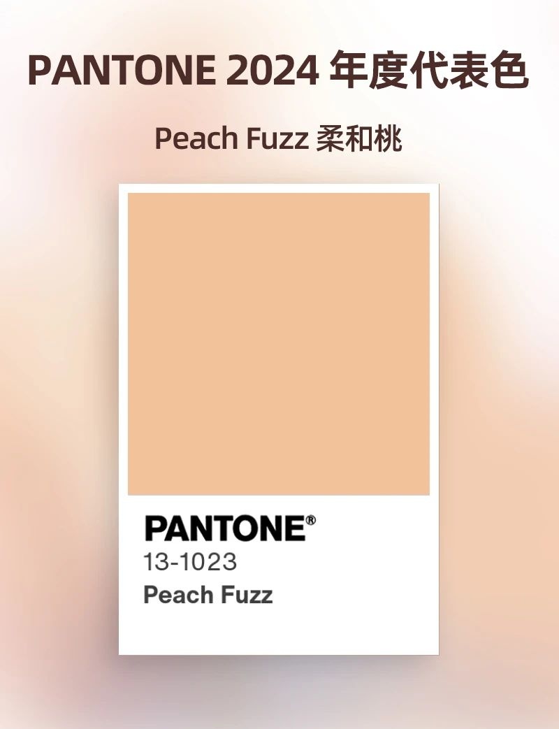 PANTONE 13-1023 柔和桃色調,溫暖而熱情傳達出關懷他人的訊息,溫馨的感覺將眾人聚集在一起豐富彼此的靈魂。